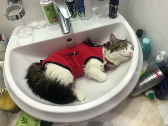 洗面台でひと休み。