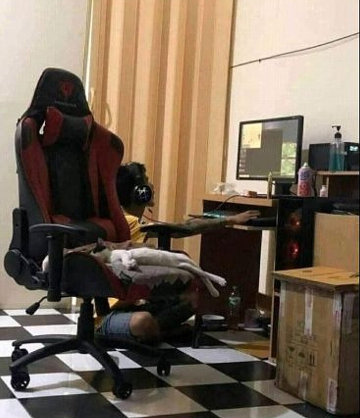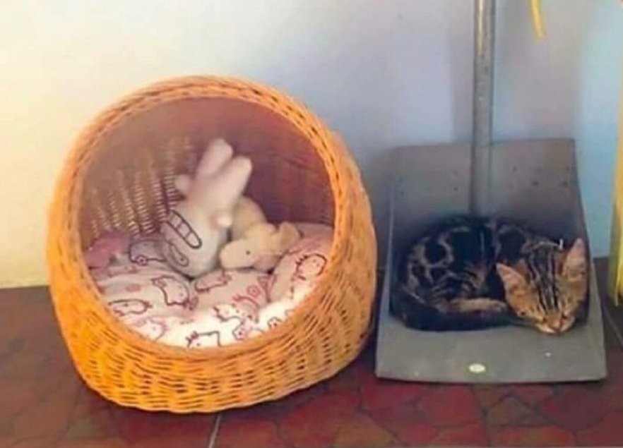 朝起きたら、なぜかちりとりの上で寝てて、