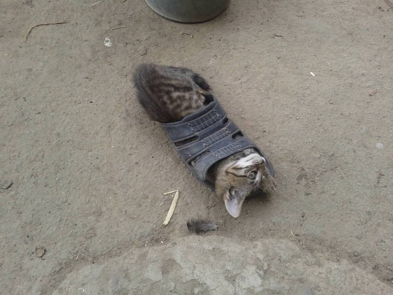 パパのスリッパに入ったらぴったりサイズで落ち着いちゃって、