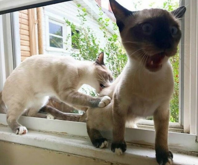 ひなたぼっこしようとして場所の取り合いになって、
