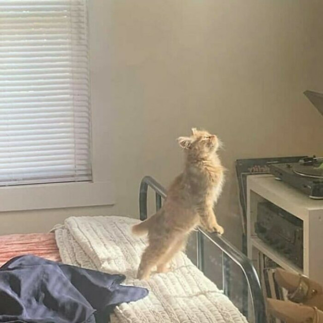 朝起きて、伸びをして、
