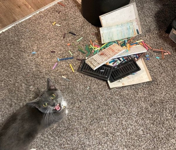 テーブルの上においてあったクレヨンが勝手に落ちちゃって、