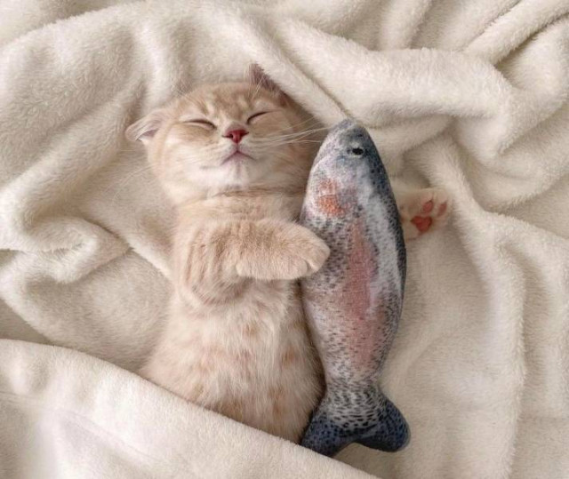 朝起きたらお魚を抱っこしてて、