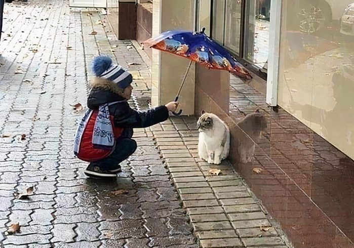突然雨が降ってきて、女の子が傘をかけてくれて、