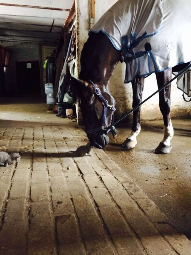 お馬さんにおはようを言いに行って、