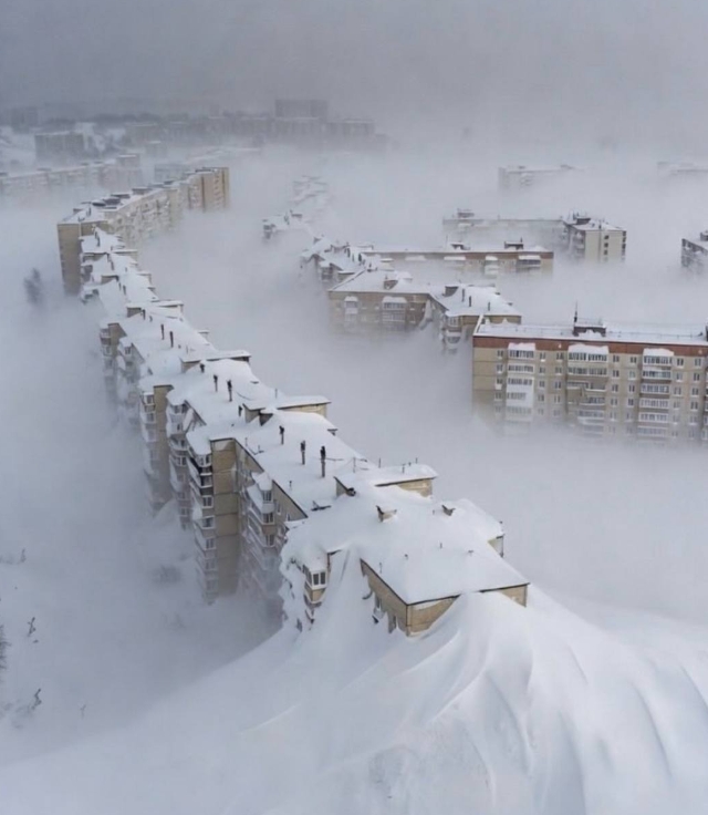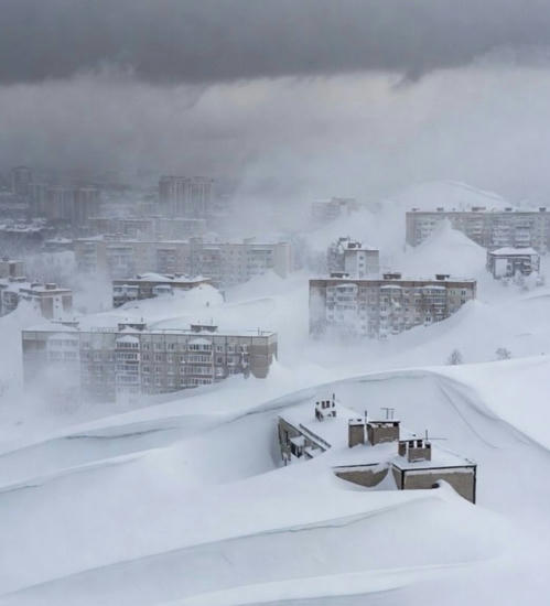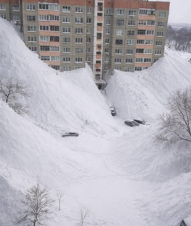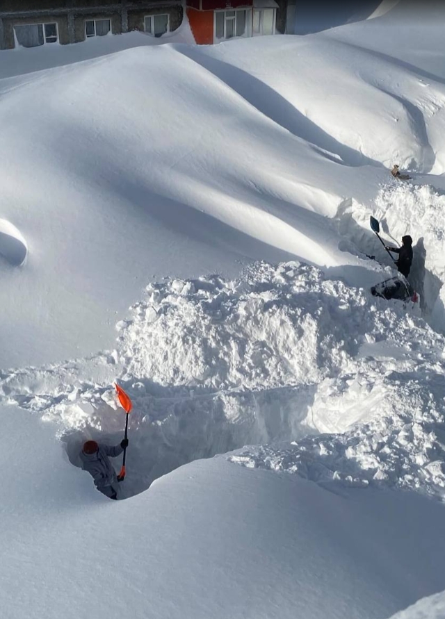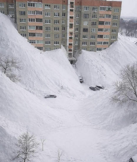 積雪は2m~2.5mにもなり、4階の窓から雪山に飛び降りて外出したりしている。