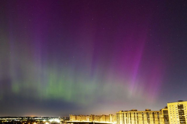 25日早朝(日本時間)に太陽風の乱れが到達し、磁気圏の活動が強まったため、モスクワやカザンでオーロラが観測されました。
